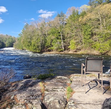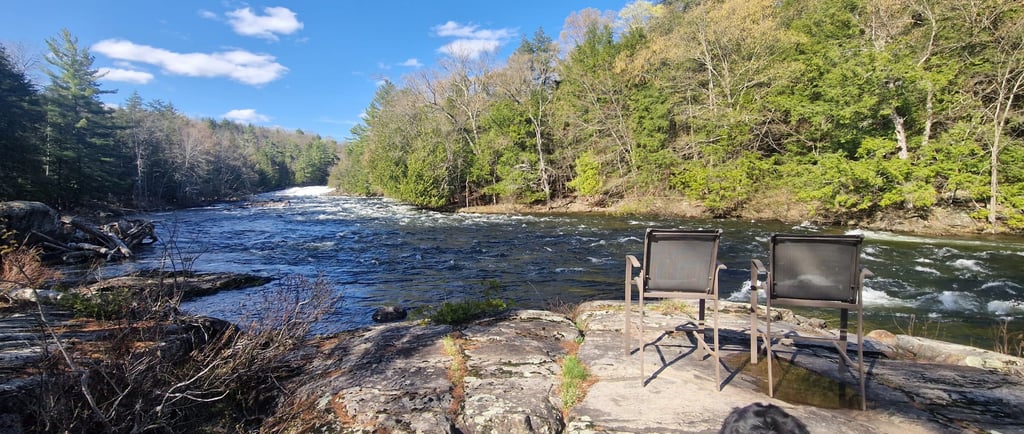Nichés le long de la Rivière de la Petite Nation et jouxtant les Chutes Lockbow, nous sommes Astrid et Xavier-Loup, un couple passionné de nature et de vie simple